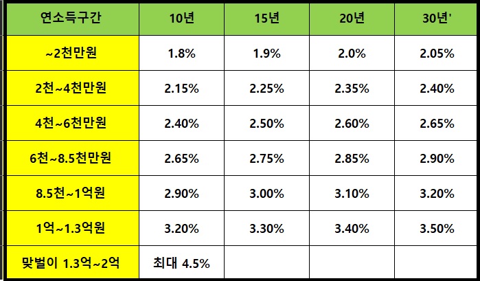 대출 금리는 대출 기간과 신청인의 소득 수준에 따라 차등 적용됩니다.