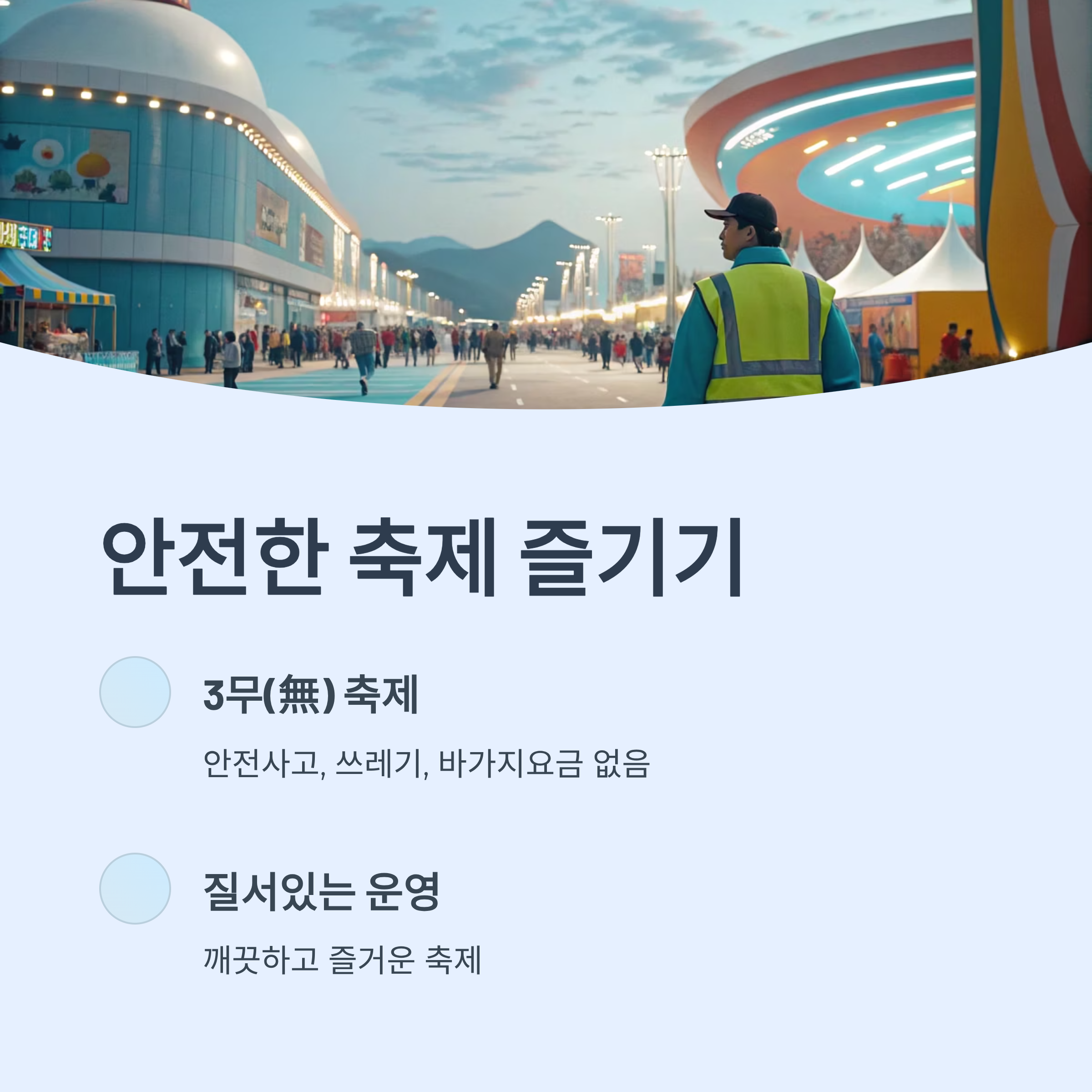 대전시에서 '3무(無) 축제'를 목표로 안전 관리에 만전을 기하고 있다고 하니 믿고 즐길 수 있겠죠?