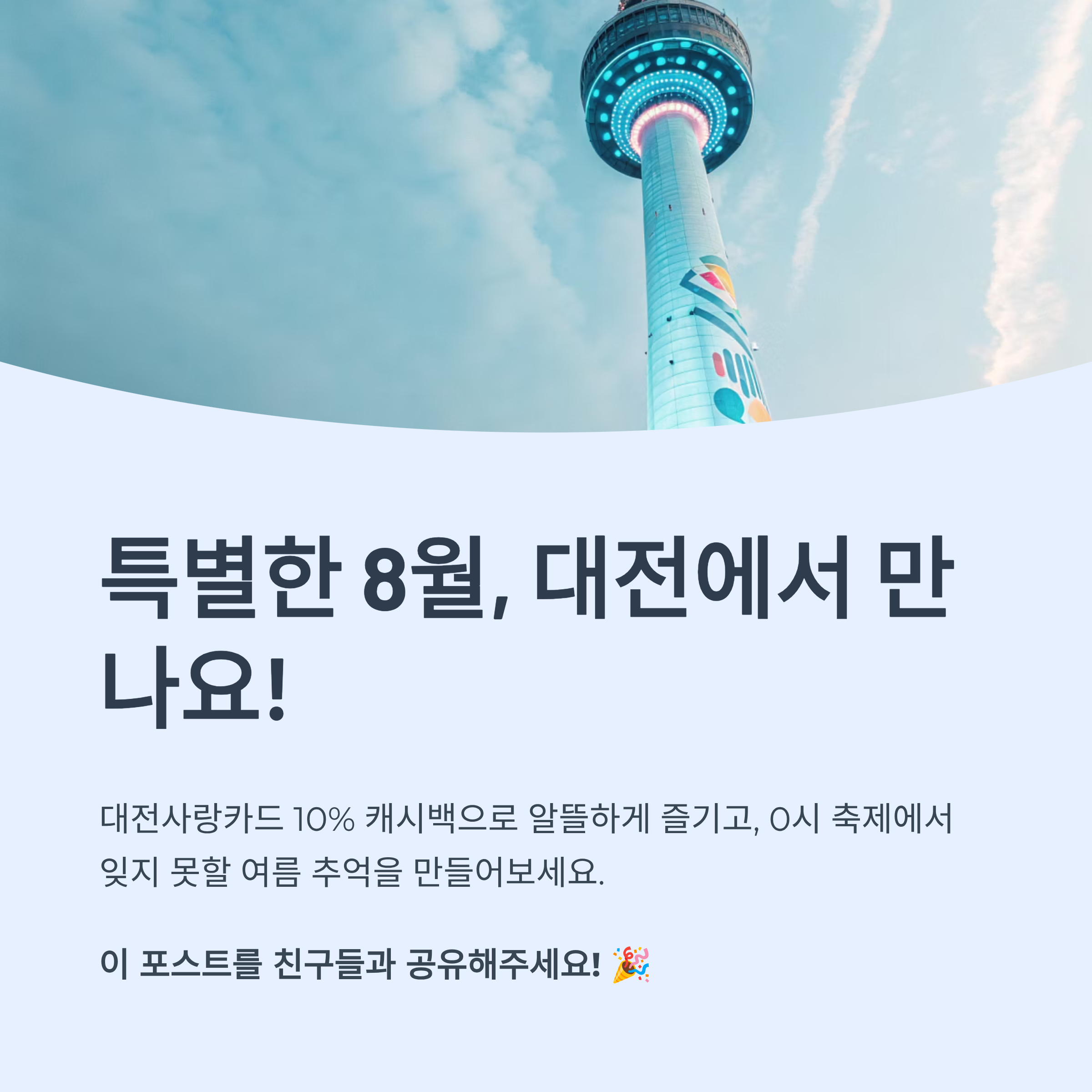 🎯 대전사랑카드 8월 10% 캐시백으로 대전 0시 축제 꿀잼 즐기기!