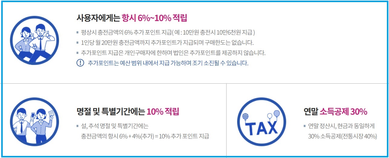 - 인센티브: 10% (100만 원 충전 시 10만 원 추가 지급)