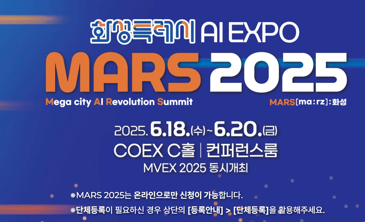 - MARS 2025: 'Urban AI, 화성특례시'를 주제로, 스마트시티로 도약하는 화성특례시의 AI 기반 미래 기술이 소개됩니다. 스마트 팩토리, 원격 헬스케어, 자율주행 로보틱스 등 첨단 공공 인프라가 도시 환경 속에서 어떻게 시민의 삶을 혁신하는지 구체적인 미래 모델을 제시합니다.